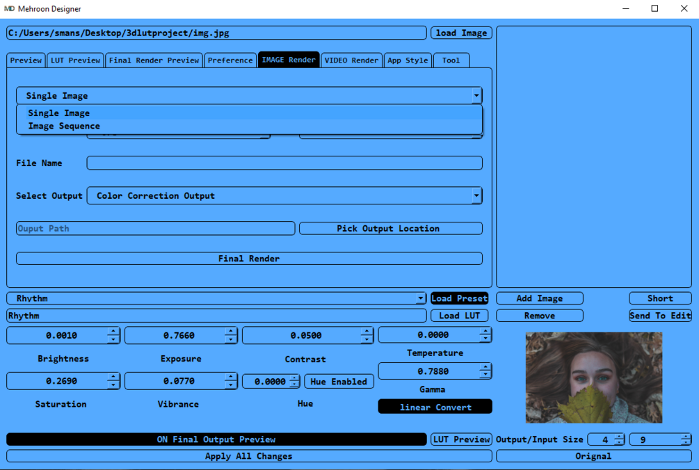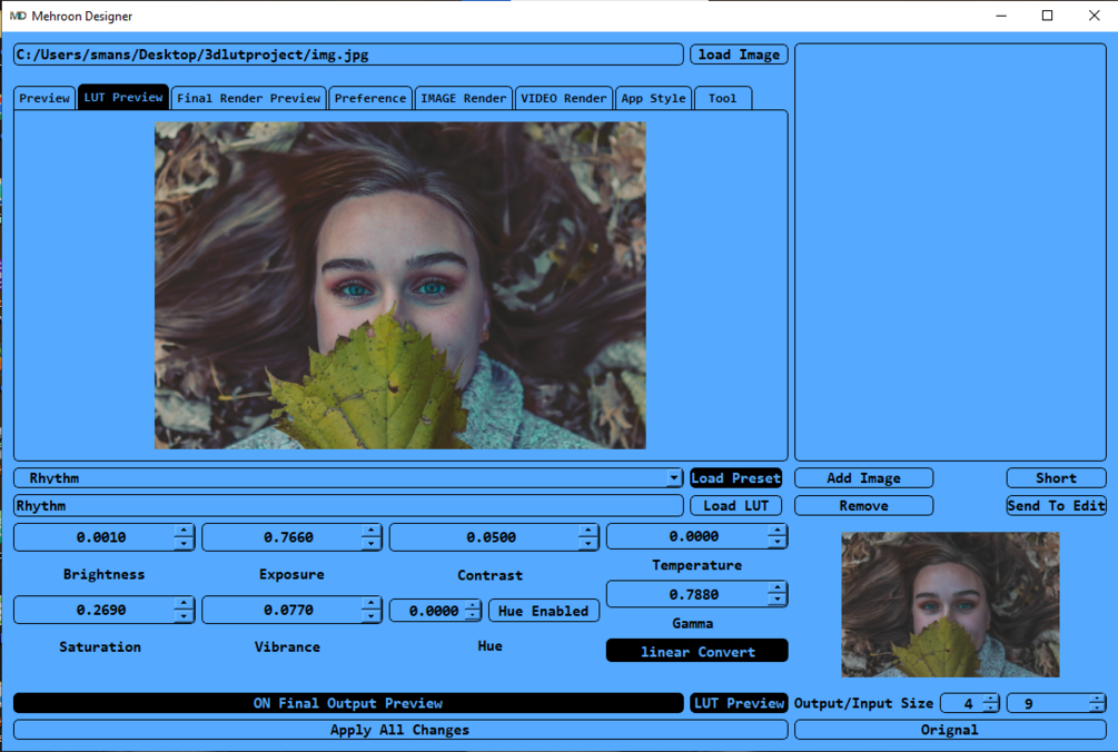The Color Grading Window App Tool allows you to import images and videos with ease and supports 3D LUT Cube files and Hald image support--> Not need To convert An LUT file like Photoshop